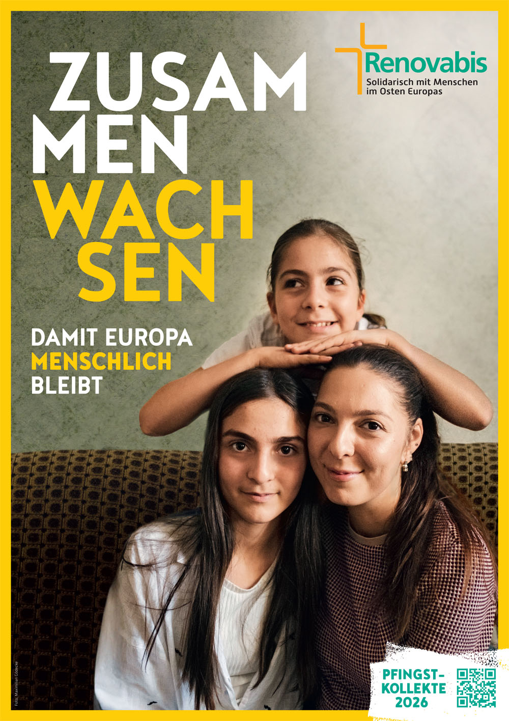 Mit dem Leitwort „zusammen_wachsen. damit Europa menschlich bleibt“ greift Renovabis in der Pfingstaktion 2026 die wachsende Polarisierung und Zerrissenheit in Europa auf – in den Partnerländern Mittel-, Ost- und Südosteuropas ebenso wie in Deutschland.