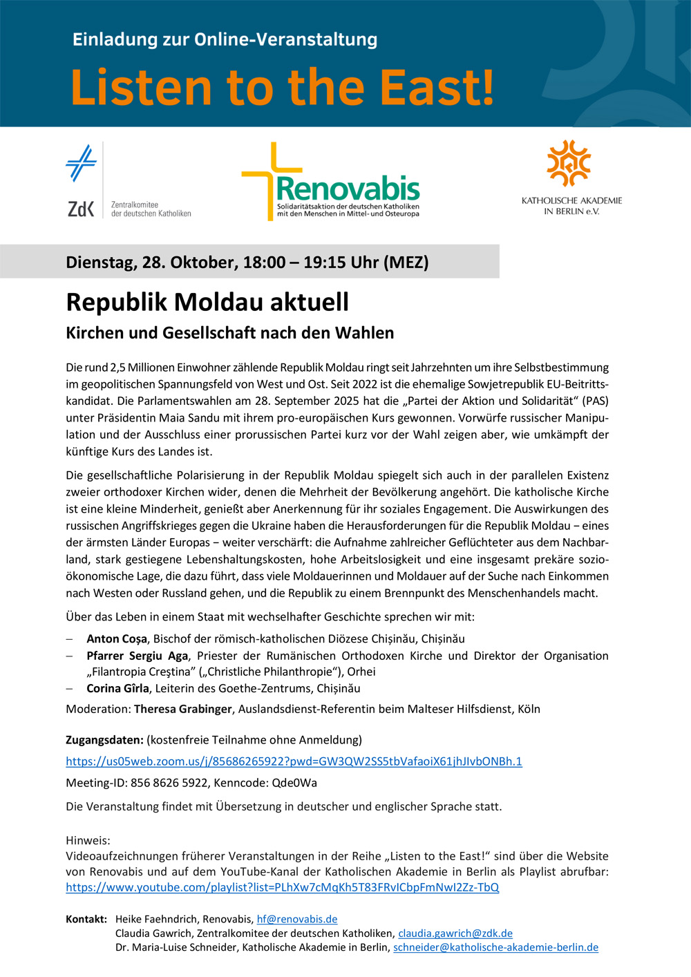Online-Gesprächsreihe "Listen to the East!" des Zentralkomitees der deutschen Katholiken, Renovabis und der katholischen Akademie in Berlin