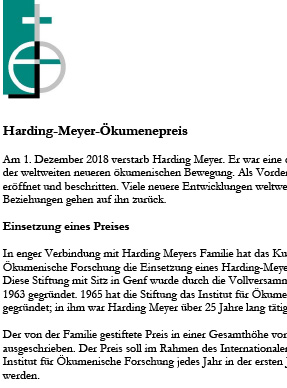 Ausschreibung: Harding-Meyer-Ökumenepreis