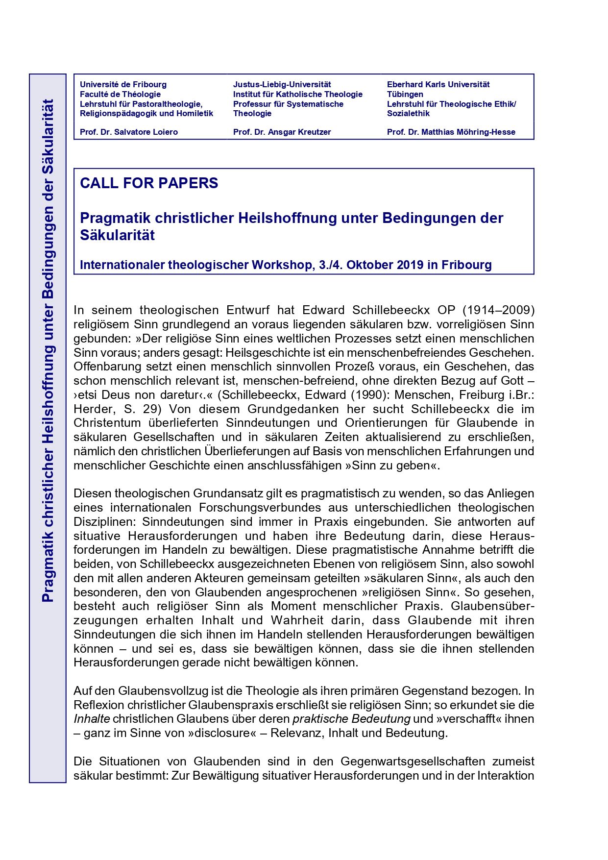 Call for Papers: Pragmatik christlicher Heilshoffnung unter Bedingungen der Säkularität