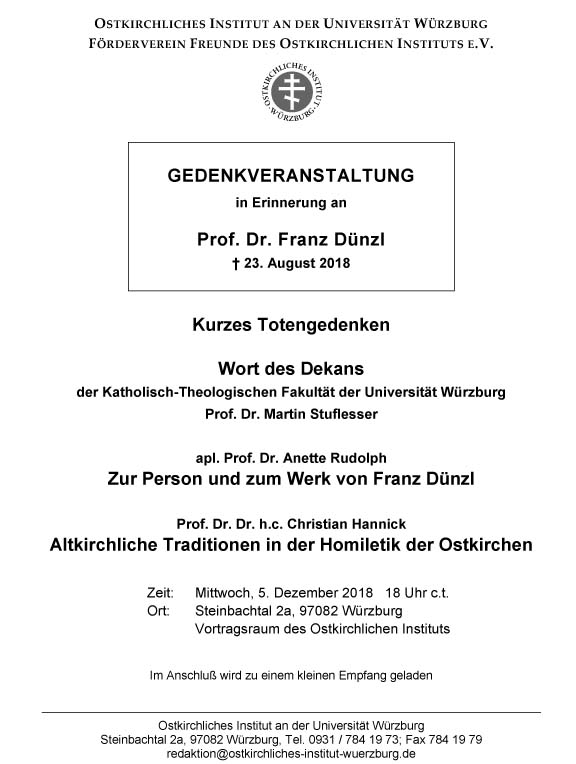 Gedenkveranstaltung für Prof. Dr. Franz Dünzl