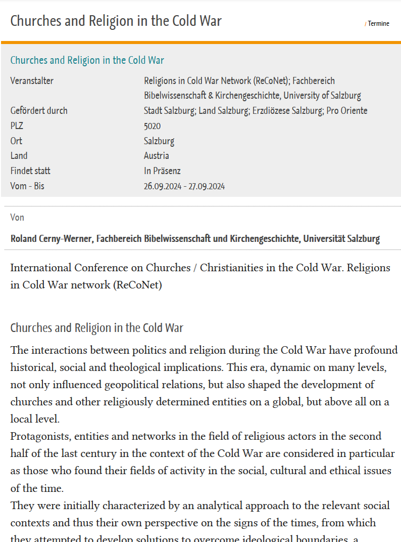 Konferenz: Churches and Religion in the Cold War