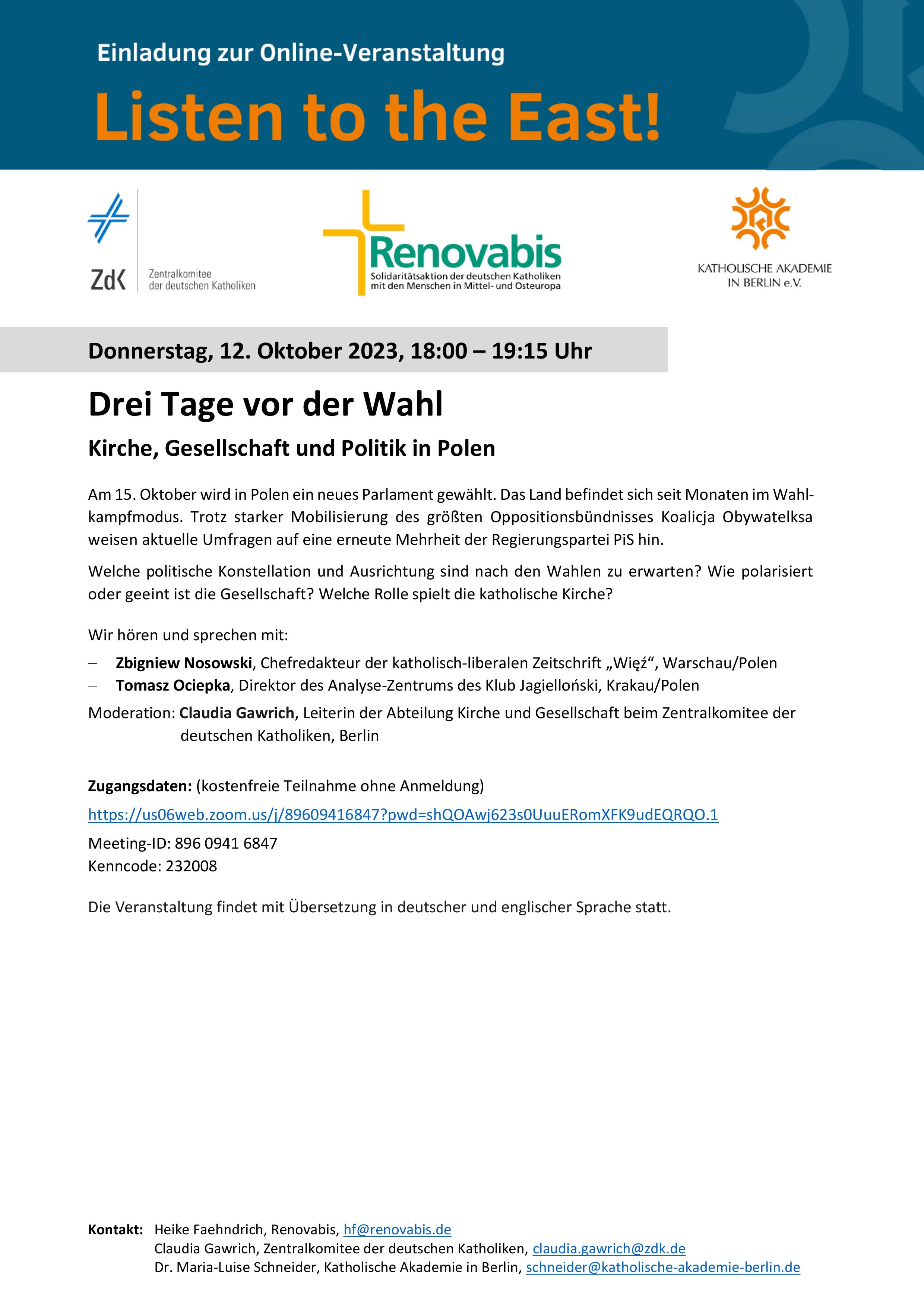 Online-Veranstaltung: Drei Tage vor der Wahl - Kirche, Gesellschaft und Politik in Polen