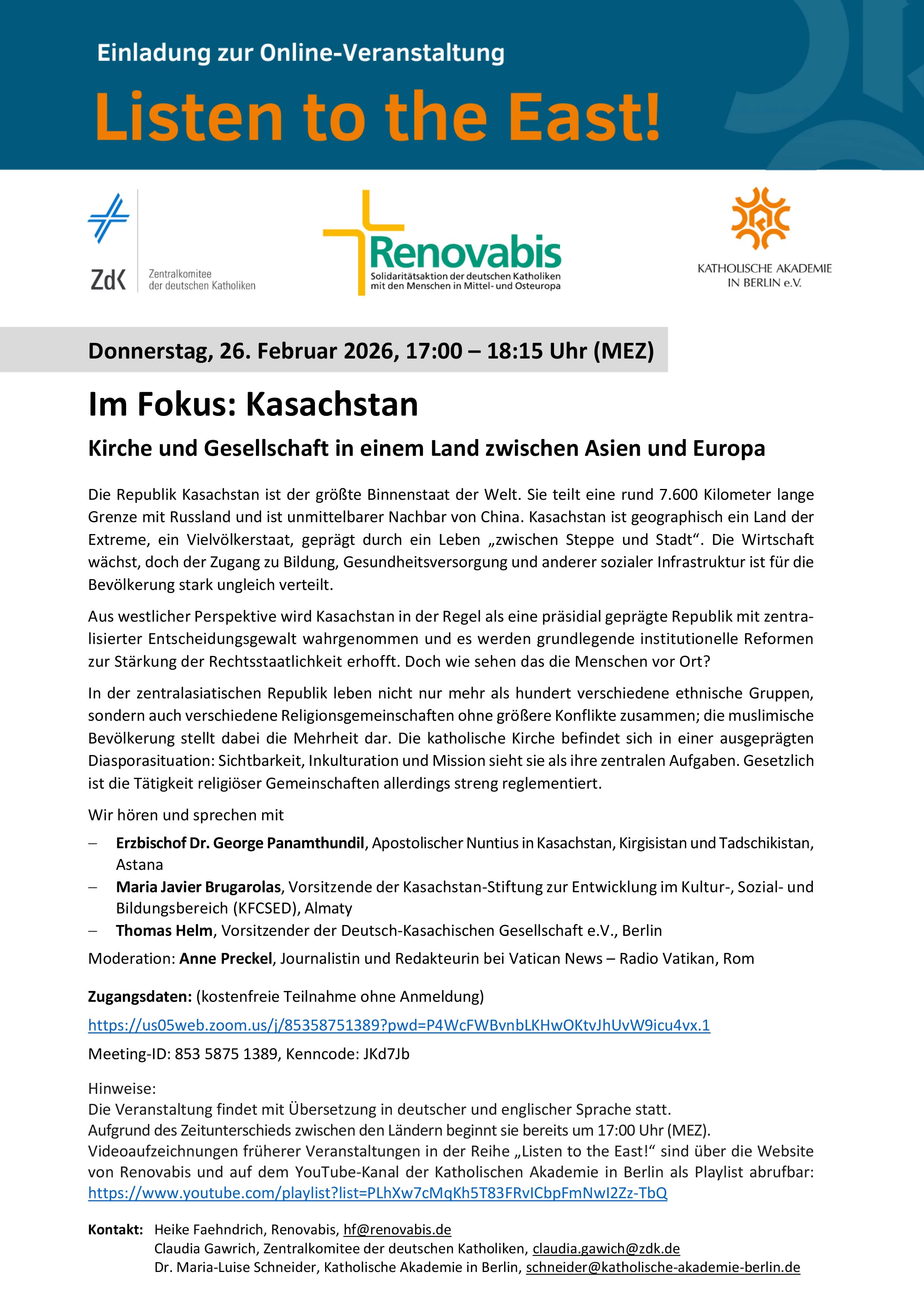 Online-Gesprächsreihe "Listen to the East!" des Zentralkomitees der deutschen Katholiken, Renovabis und der katholischen Akademie in Berlin