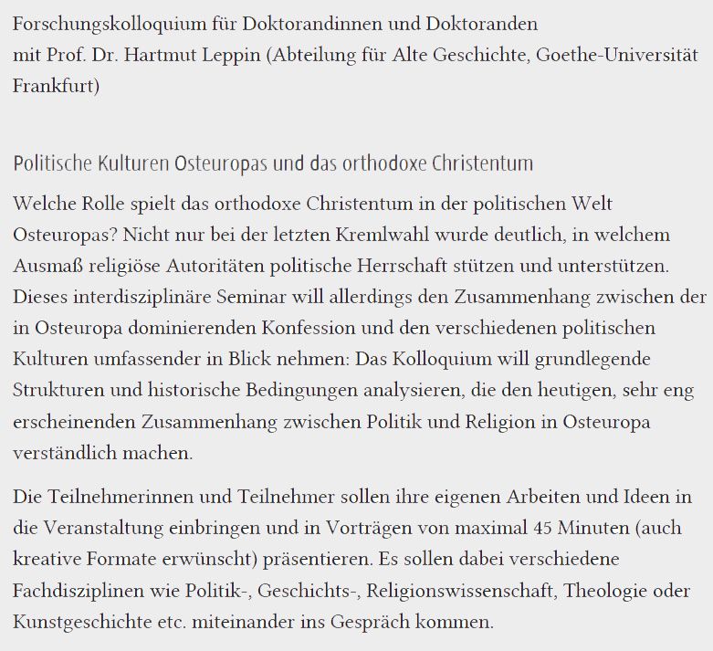 Call for Papers: Politische Kulturen Osteuropas und das orthodoxe Christentum