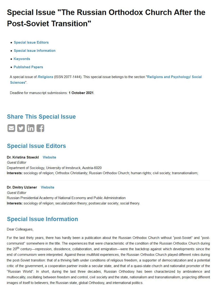 Call for Papers: The Russian Orthodox Church After the Post-Soviet Transition
