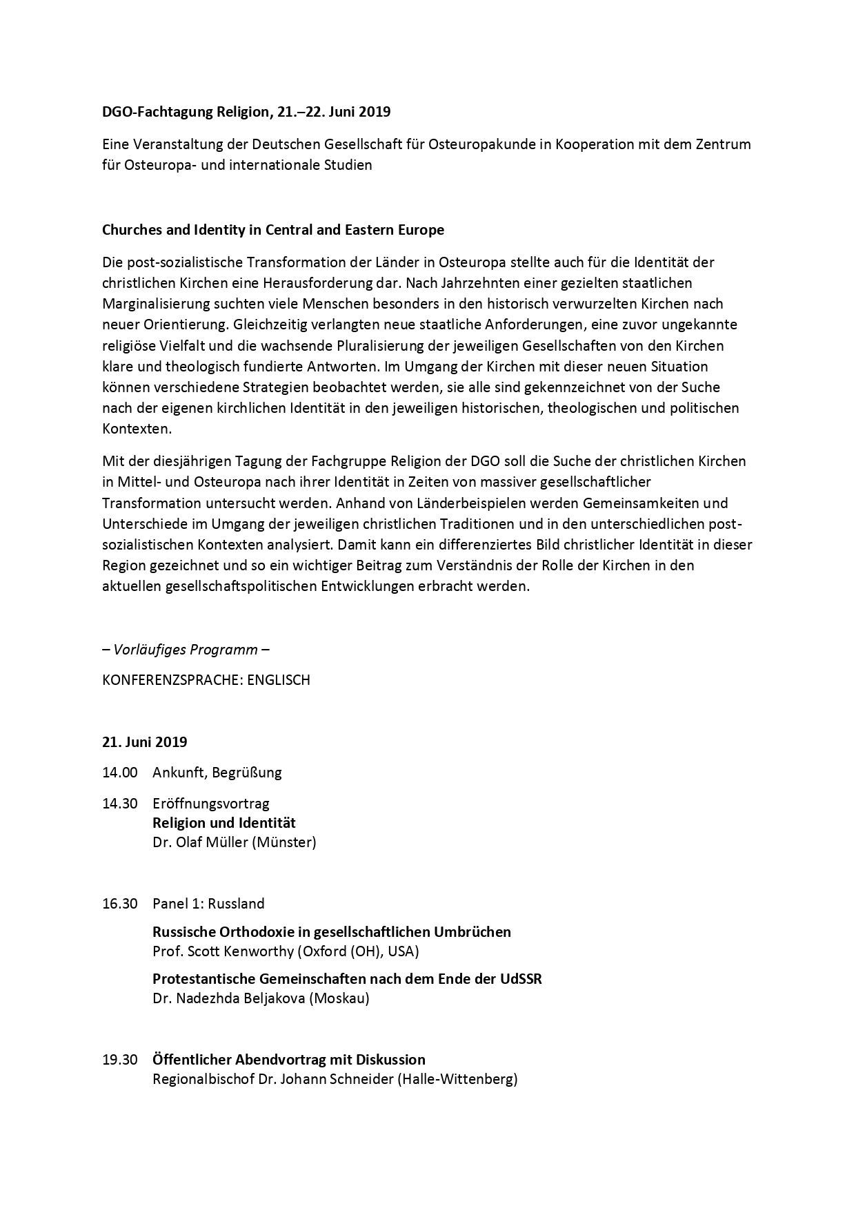 DGO-Fachtagung Religion: Churches and Identity in Central and Eastern Europe