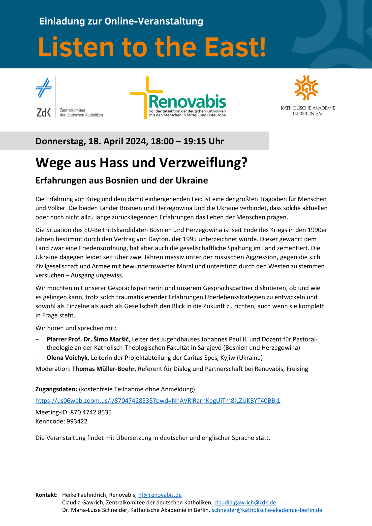 Online-Veranstaltung: Wege aus Hass und Verzweiflung
