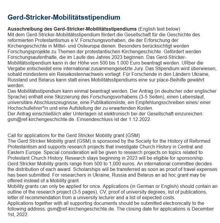 Ausschreibung: Gerd-Stricker-Mobilitätsstipendium