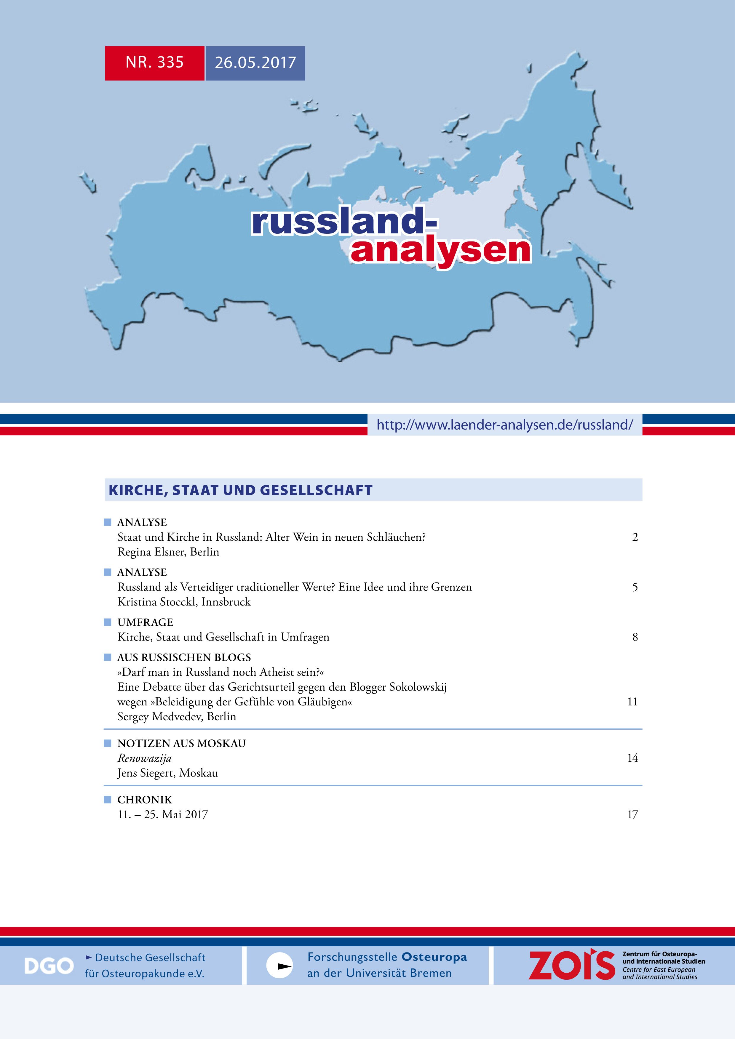 Russland-Analysen Nr. 335: Kirche, Staat und Gesellschaft